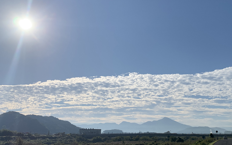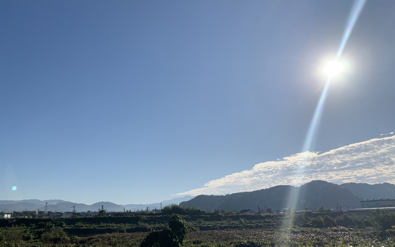 今朝の晴天のの空に太陽から放つ光線がきれい!