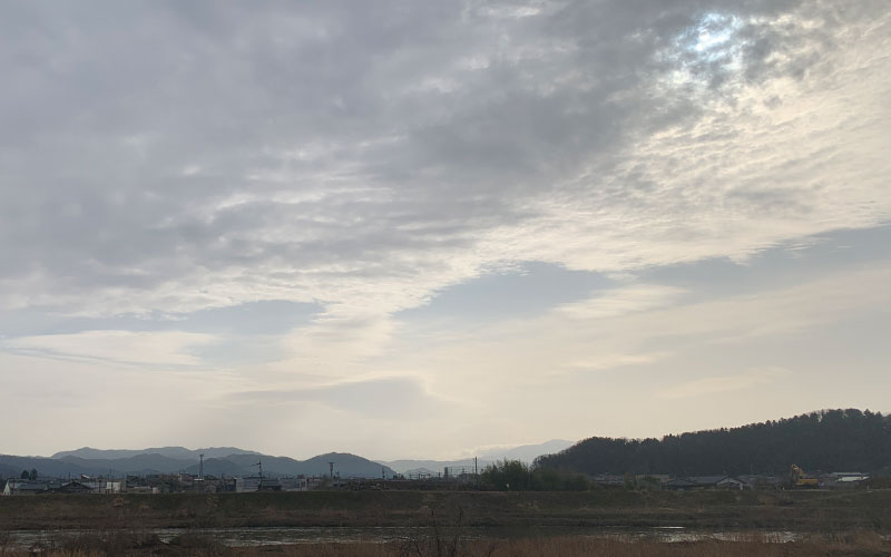 今朝の8時前の東の空、暖かな一日を楽しめそうにと予想させる空模様です