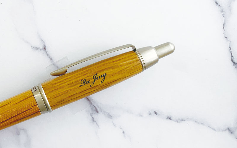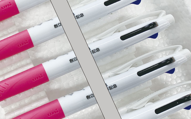 パッド印刷-個人名入り個別名入れペンは銀色印刷です。