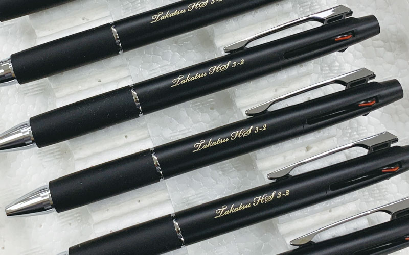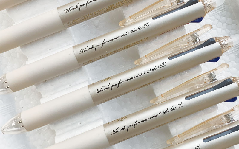パッド印刷-三菱ジェットストリーム800に銀色筆記体印刷