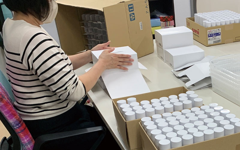 名入れ印刷の前後作業に追われる「一コマ」です。