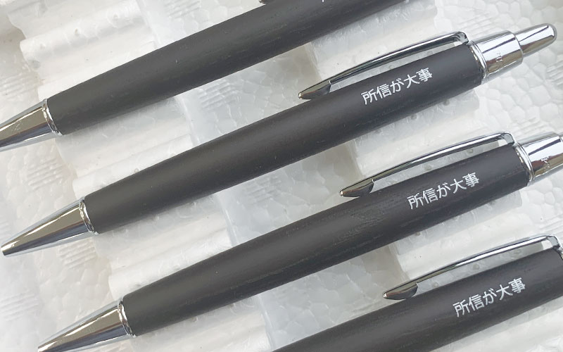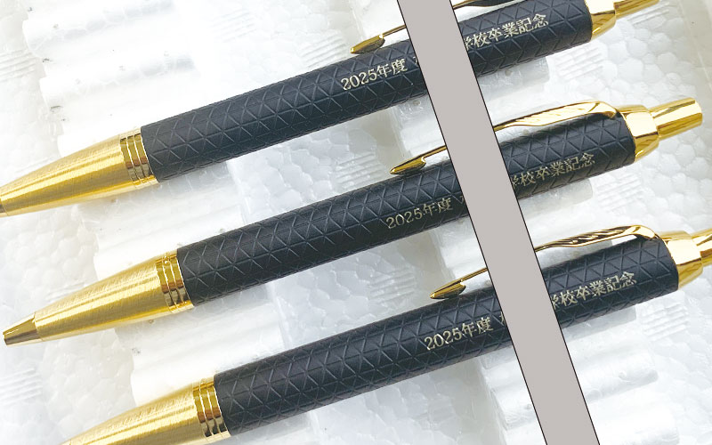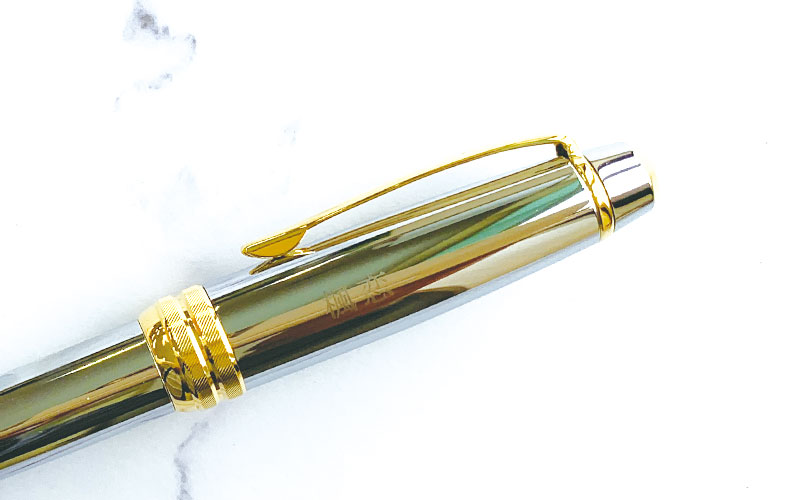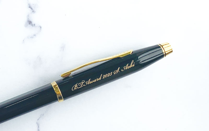 レーザー彫刻-クロス・センチュリーⅡ ブラックラッカーは金色印字です。