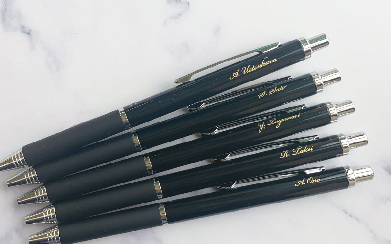 レーザー彫刻-ゼブラ・フォルティア300ブラック軸に金色筆記体印字
