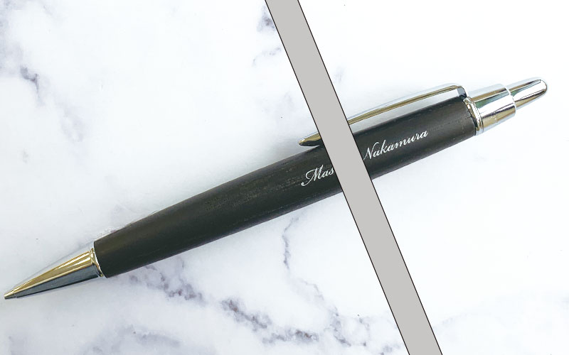 銀色筆記体個人名印字のレーザー彫刻-パイロット・アクロドライブ製品