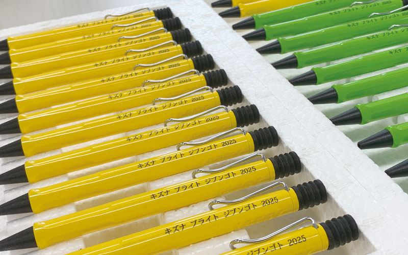 パッド印刷で金色筆記体の個人名印刷