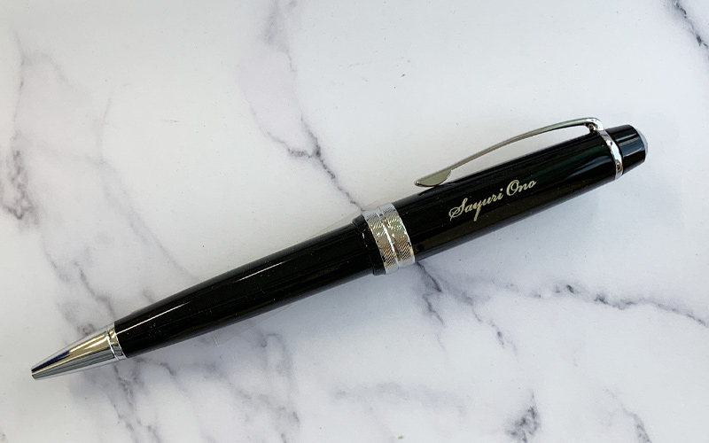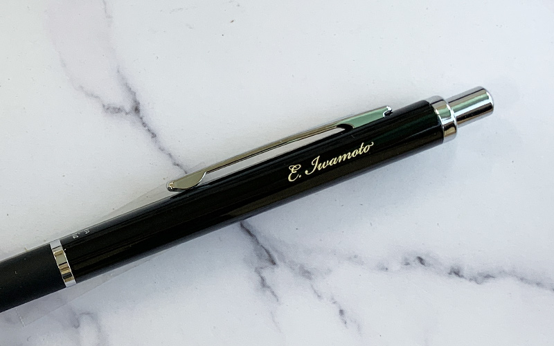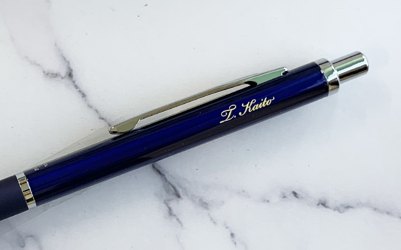 黒軸・青軸は、レーザー彫刻で金色筆記体印字