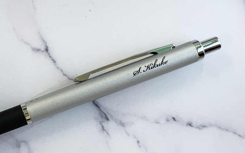シルバー軸は、パッド印刷で黒色筆記体印刷