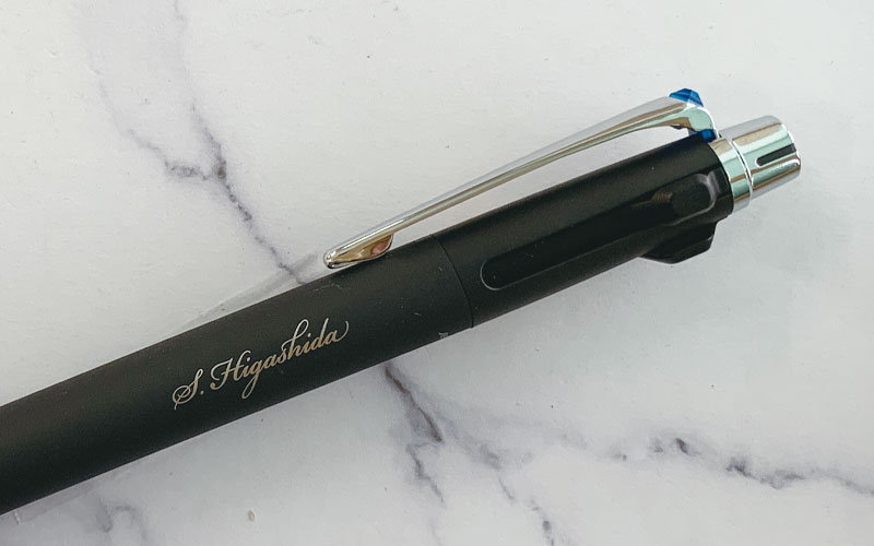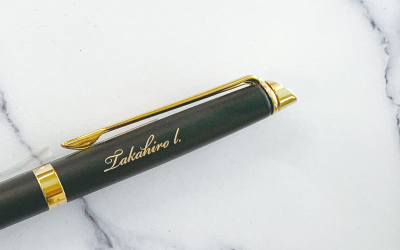 レーザー彫刻-三菱ジェットストリームプライム黒軸は金色色印字です。