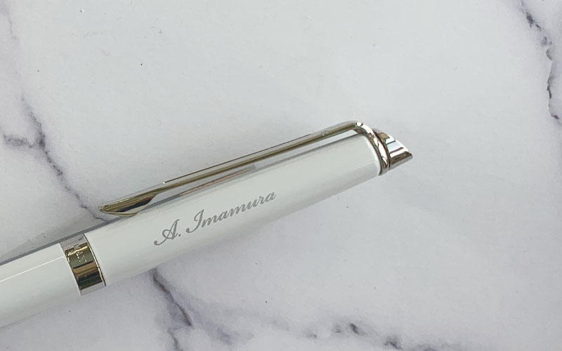 パッド印刷-個人名入り個別名入れペンは銀色印刷です。