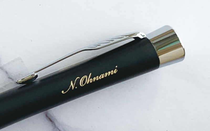 レーザー彫刻-パーカー・アーバンの黒軸に似合いの金色筆記体印字