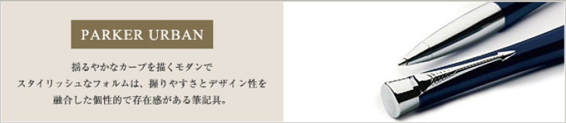 パーカー・アーバン製品:握りやすさとデザイン性を融合した個性的で存在感のある「パーカー・アーバン」。豊富なカラーバリエーションで、高級筆記具を初めて持つ若い世代の方におすすめです。