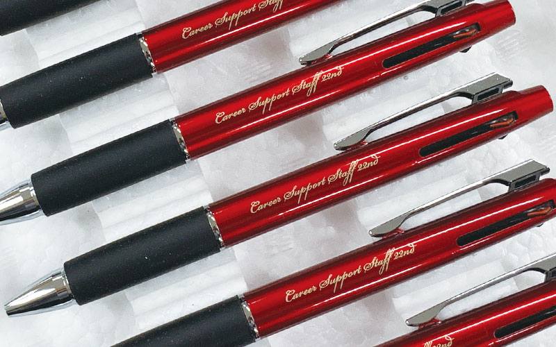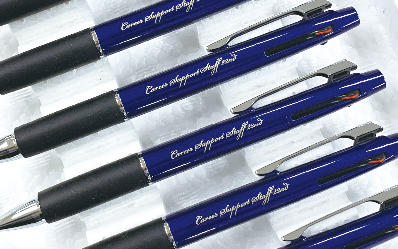 パッド印刷-三菱ジェットストリーム800に銀色筆記体印刷