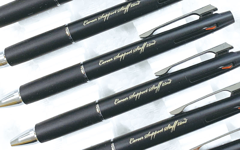レーザー彫刻-ゼブラ・フォルティア300ブラック軸に金色筆記体印字