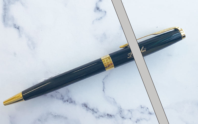 金色筆記体個人名印字のレーザー彫刻-パーカーソネット・ラックブラックGTです。