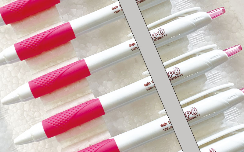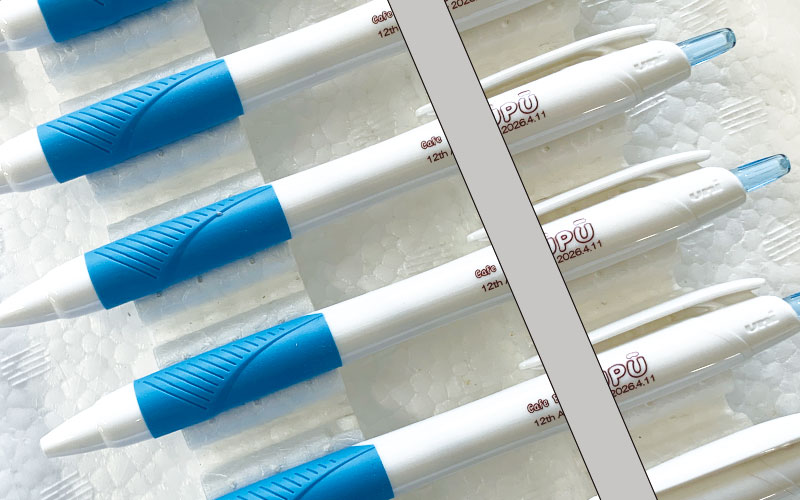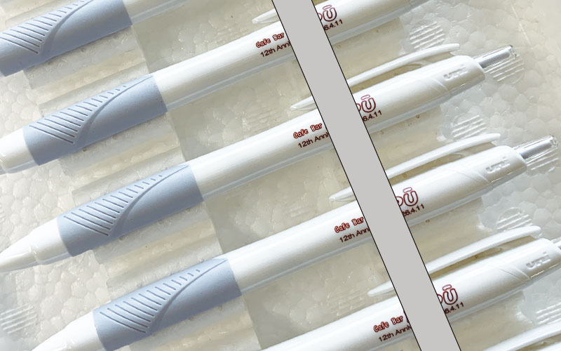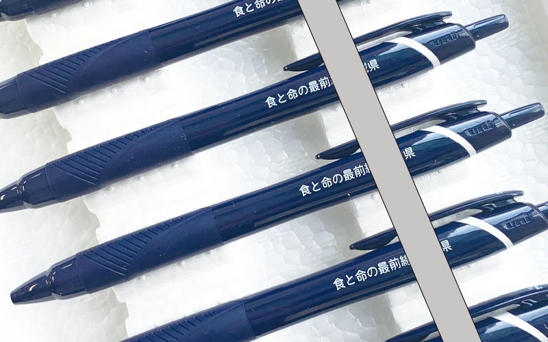 ○○県のアピールの名入れペン―白色のパッド印刷仕上げで人気です。