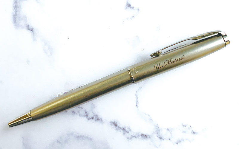 銀色筆記体個人名印字のレーザー彫刻-パイロット・アクロドライブ製品