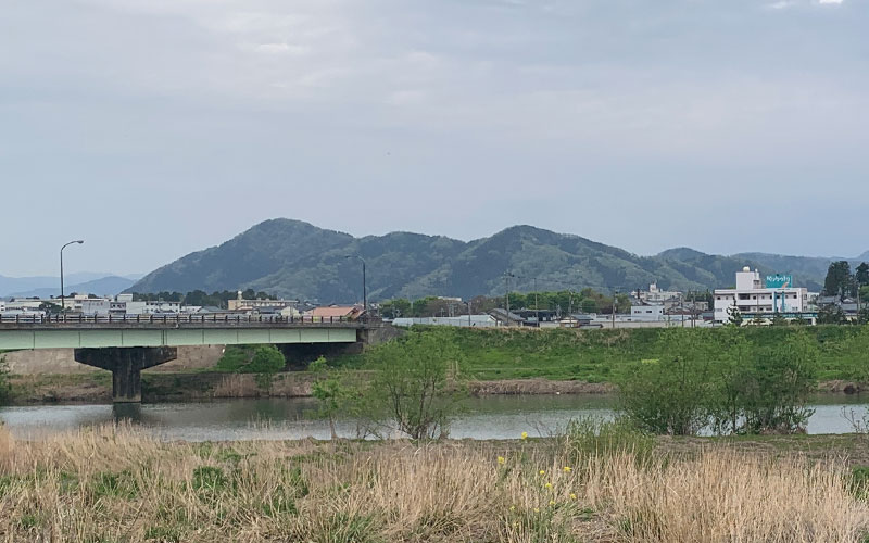対岸の堤防に新緑が拡がる「万物創生の春」