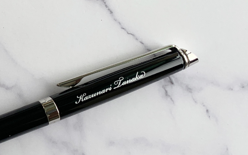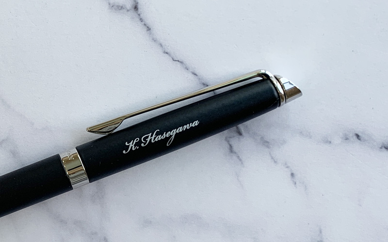 この、「マットブラック軸に銀色筆記体印刷」の仕上がりが個人的に最高!