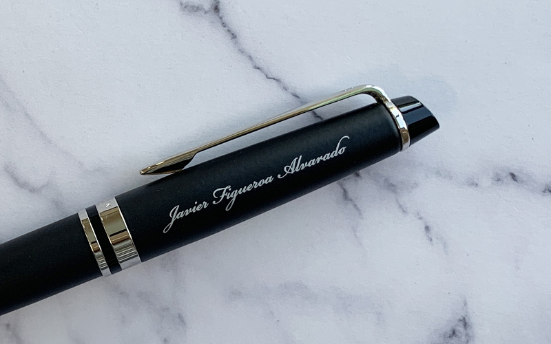 パッド印刷―ウォーターマン・マットブラック軸に銀色筆記体印刷