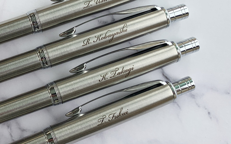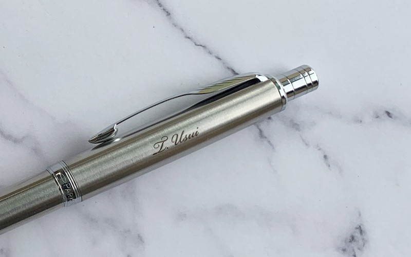 レーザー彫刻—パーカー・ソネットオリジナルのステン軸にこげ茶色筆記体印字