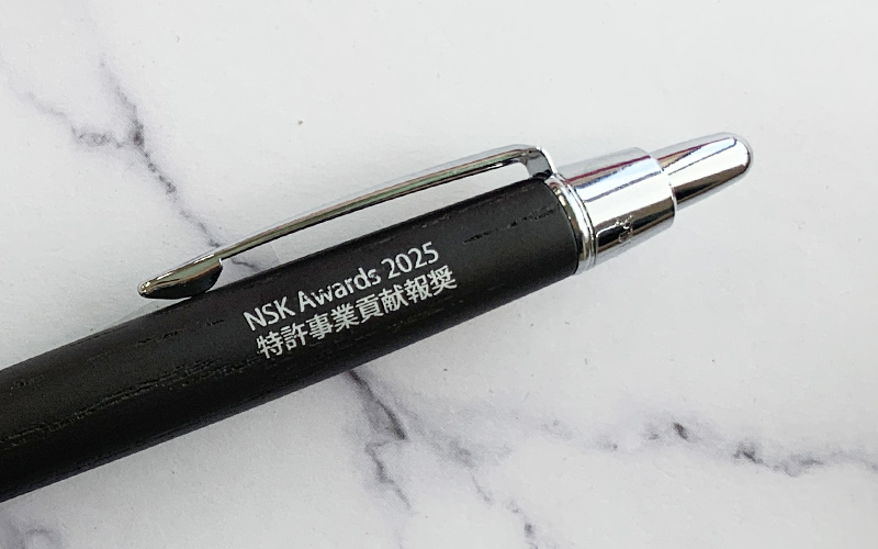 パッド印刷―三菱ピュアモルト・オークウッドプレミアムエディション軸に銀色印刷