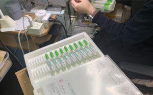 パッド印刷-三菱ジェットストリーム150の白黄緑色に同系色で印刷です。