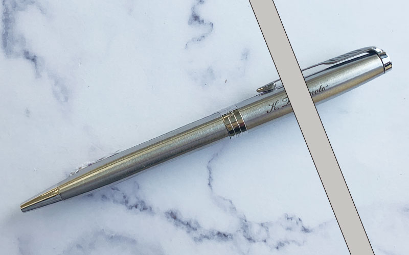 銀色筆記体個人名印字のレーザー彫刻-パイロット・アクロドライブ製品