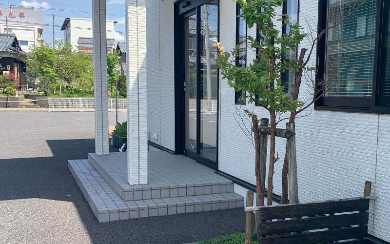 社屋裏側(東側)は、朝日をいっぱい受けて、午後は日陰になり、西日は当たらずに、ヒメシャラの木にとっては最適な環境でもあります。
