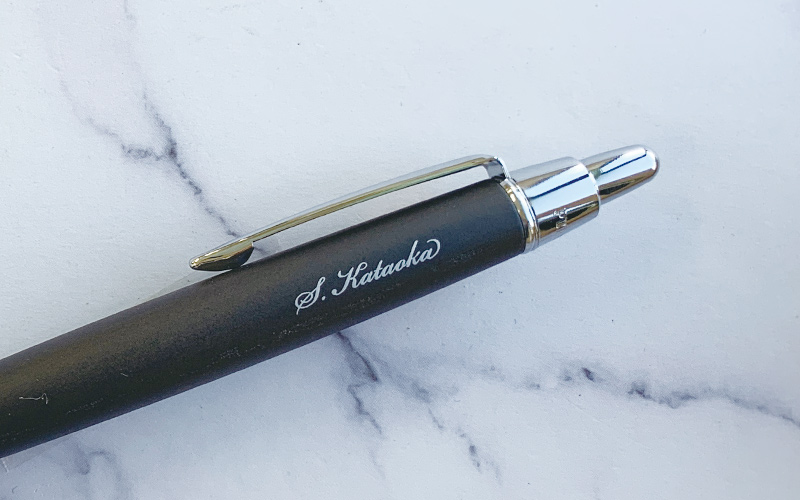 そのペンに印刷の場合、軸色に合わせたインクの色を調整することでさらに見栄えのいい名入れペンとしての仕上がりに名地ます。