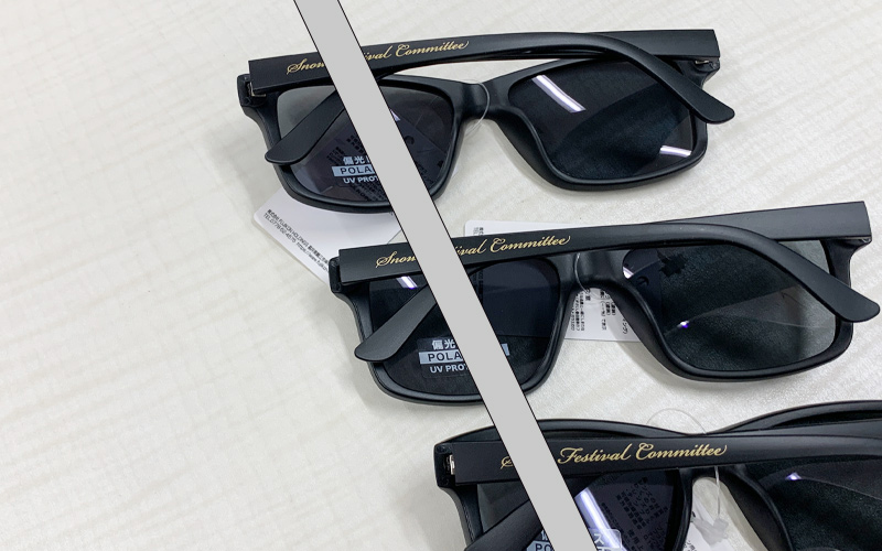 偏光レンズサングラスに金色筆記体印刷