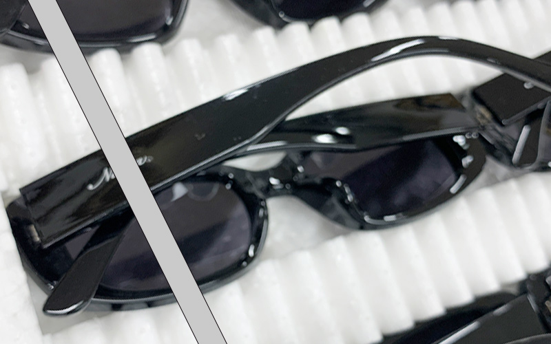 サングラスの左外側に、丁寧仕上げの筆記体印刷を施したことによる付加価値で、ワンランク上のサングラスへと変身です。