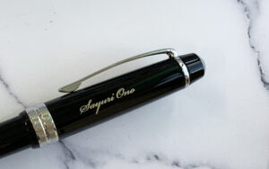 黒軸・青軸は、レーザー彫刻で金色筆記体印字