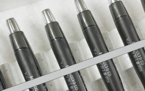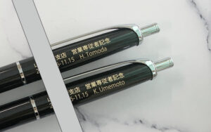 レーザー彫刻の金色印字はラックブラック軸に映え