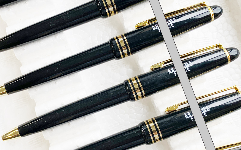 「強盗の名入れペンの写真」パッド印刷—記念品としての名入れペンは銀色印刷です。