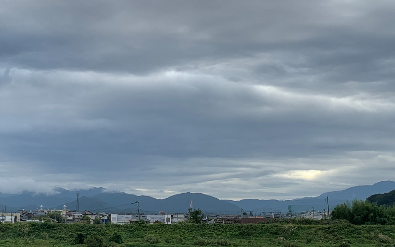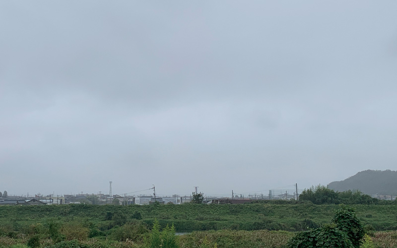 いつもの遠くの山々が雲で見えませんが、今日は雨かな?
