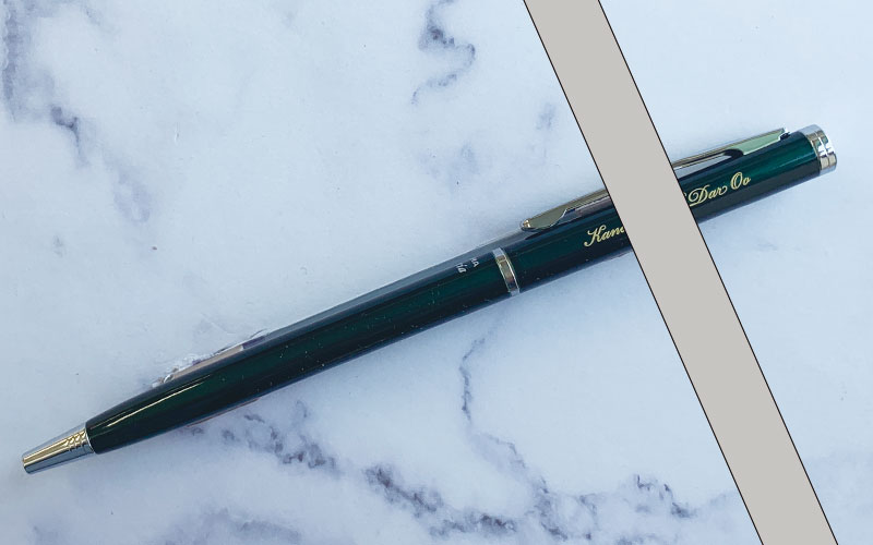 金色筆記体個人名印字のレーザー彫刻-ゼブラ・フォルティア500の緑軸
