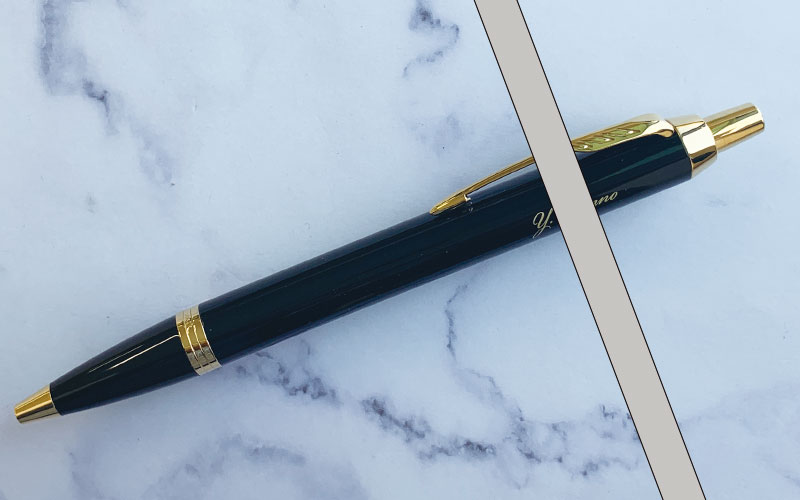 金色筆記体個人名印字のレーザー彫刻-ウォーターマン・ネイビー軸製品