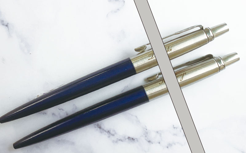 こげ茶色筆記体個人名印字のレーザー彫刻-パーカー・ジョッター製品