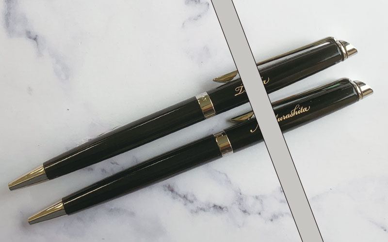 銀色筆記体個人名印字のレーザー彫刻-三菱ジェットストリームプライム製品