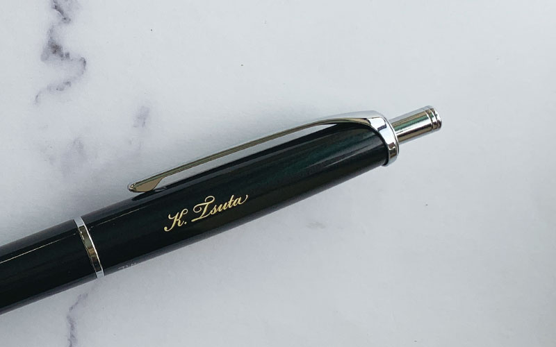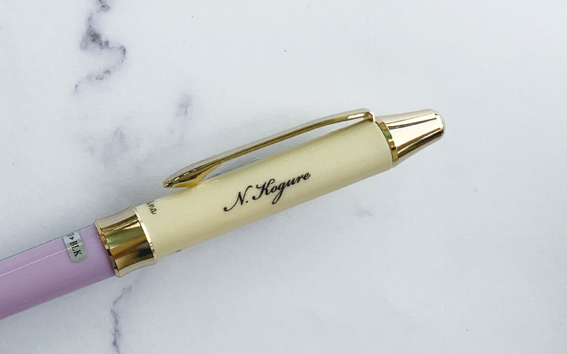 パッド印刷-ぺんてる・ビクーニャ・EX1シエリナに黒色筆記体印刷
