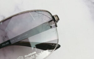 スモーククリアのレンズの正面下部にロゴ印刷です。
