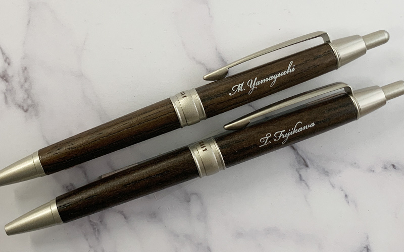 天然木製ペンに銀色筆記体印刷