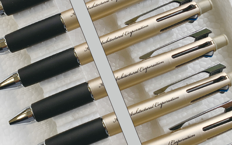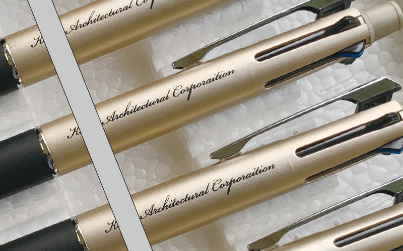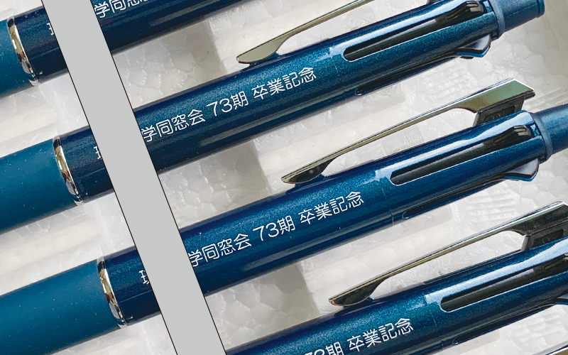 卒業記念の名入れペン—三菱・ジェットストリームに銀色印刷 ディールブルー軸
